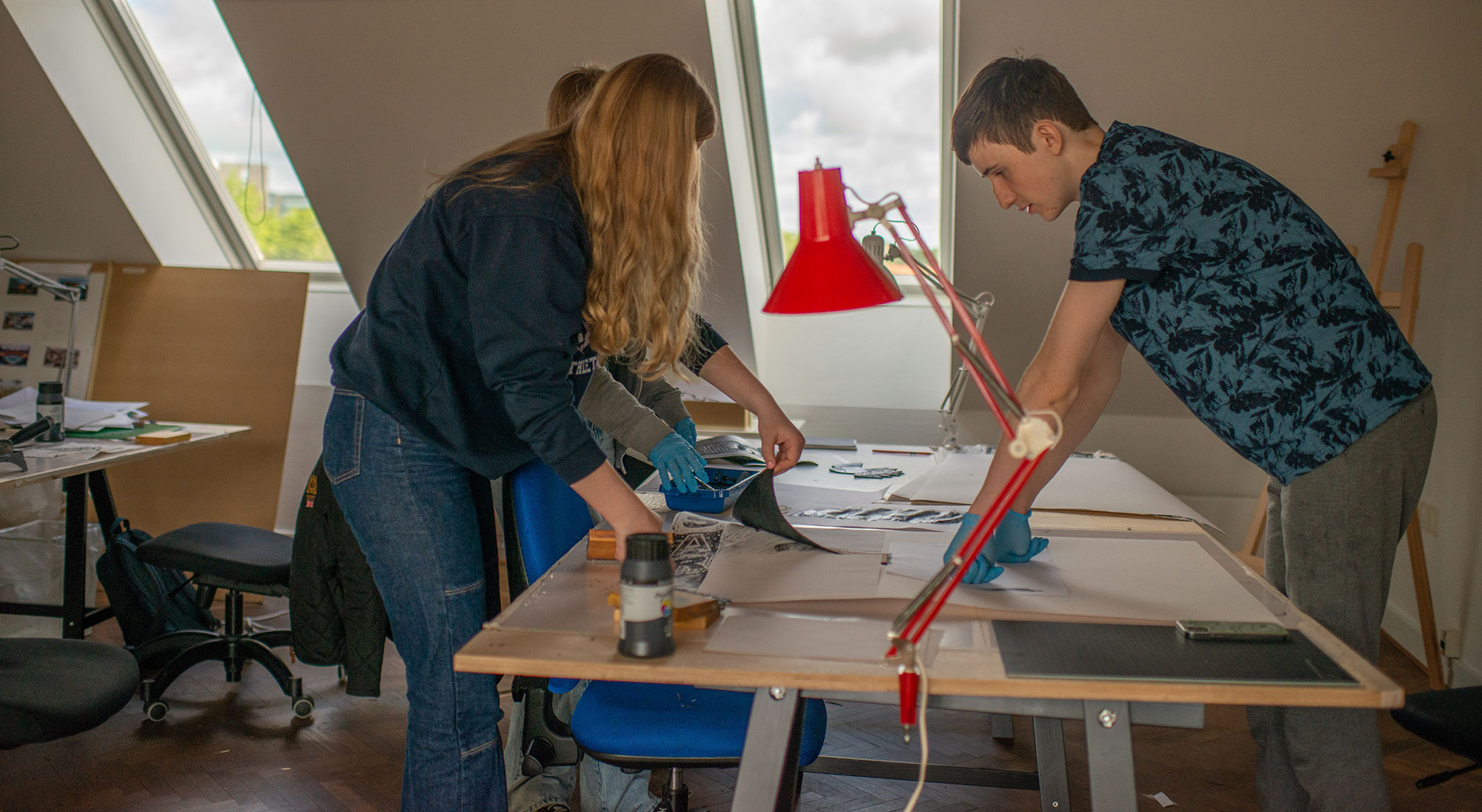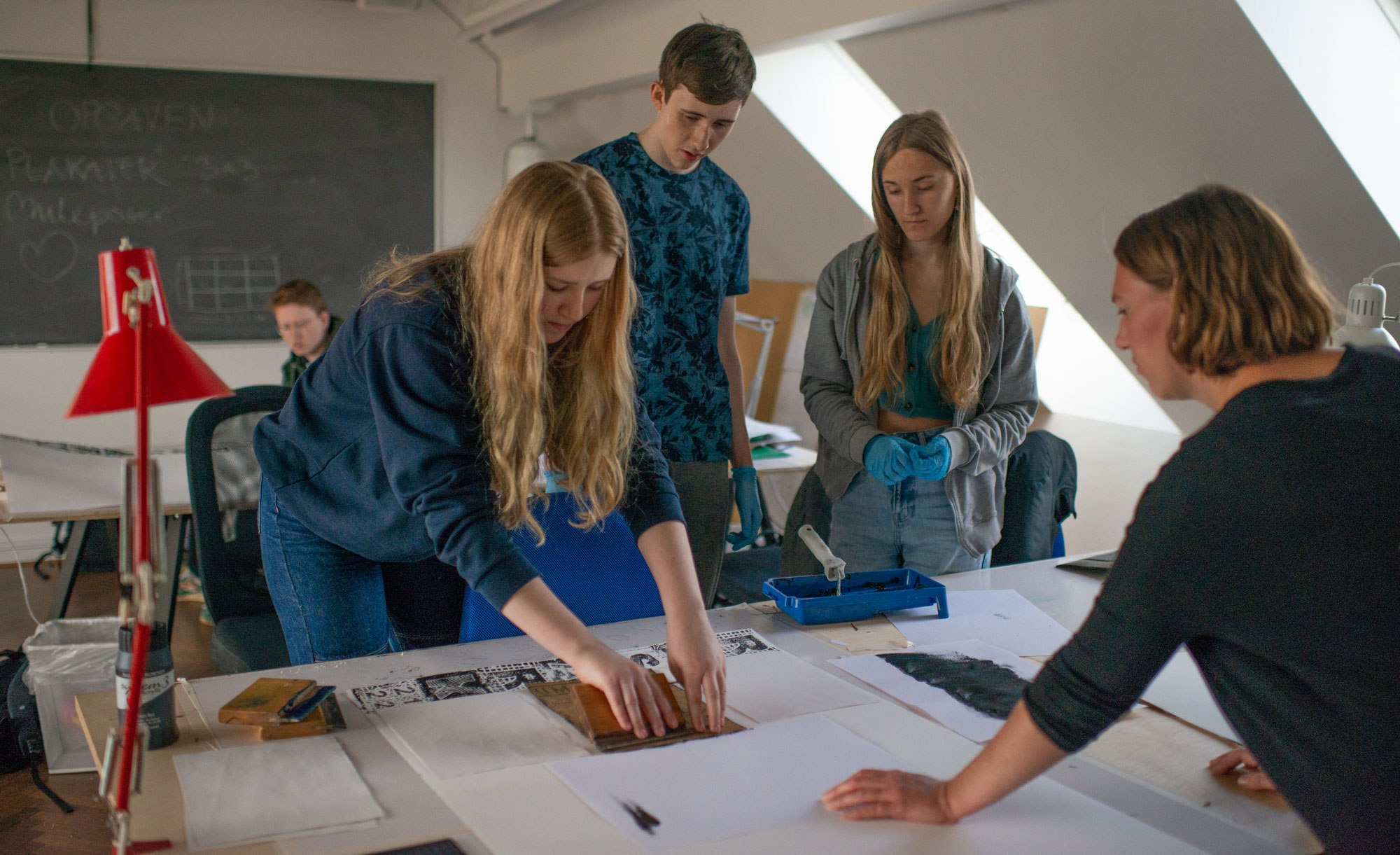 Du lærer at gå fra den første løse skitse til det færdige værk. Vi sparrer med hinanden undervejs, og året slutter selvfølgelig med en stor fernisering, hvor vi inviterer folk udefra til at se, hvad vi har skabt.